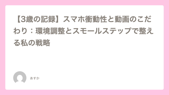 【3歳の記録】スマホ衝動性と動画のこだわり:環境調整とスモールステップで整える私の戦略