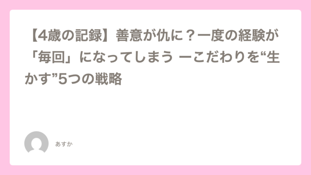 【4歳の記録】善意が仇に?一度の経験が「毎回」になってしまう:こだわりを“生かす”5つの戦略