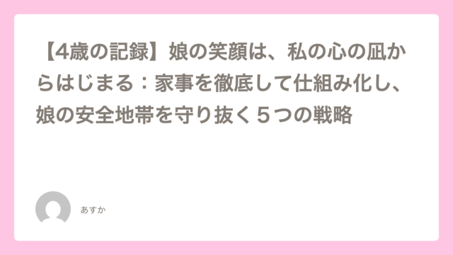 【4歳の記録】娘の笑顔は、私の心の凪からはじまる:家事を徹底して仕組み化し、娘の安全地帯を守り抜く5つの戦略