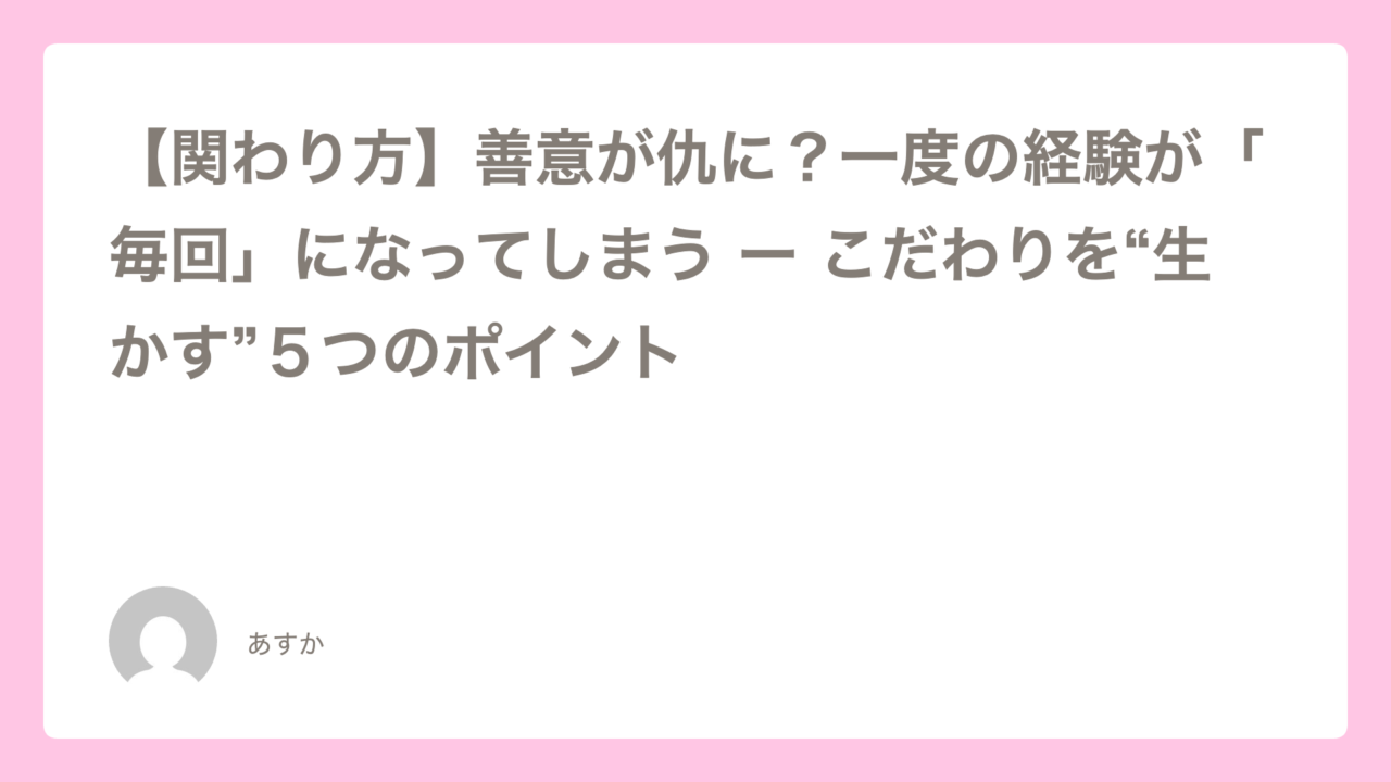 善意が仇となる?なぜ一度の経験が「毎回」になってしまうの?