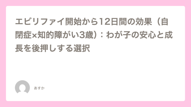 エビリファイ開始から12日間の効果(自閉症×知的障がい3歳):わが子の安心と成長を後押しする選択